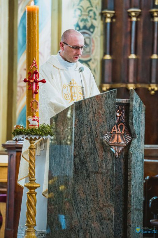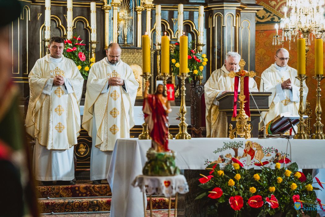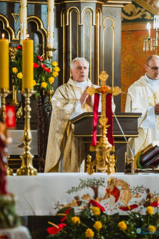 Kulminacyjnym punktem uroczystości była Msza święta odprawiona o godzinie 18.00 w kościele pw. Przemienienia Pańskiego. Liturgii przewodniczył ks. prałatdr Roman Froń, dziekan sanocki, w koncelebrze z ks. Pawłem Chylińskim, ks. Damianem Toczkiem oraz ks. Kamilem Jaworskim.